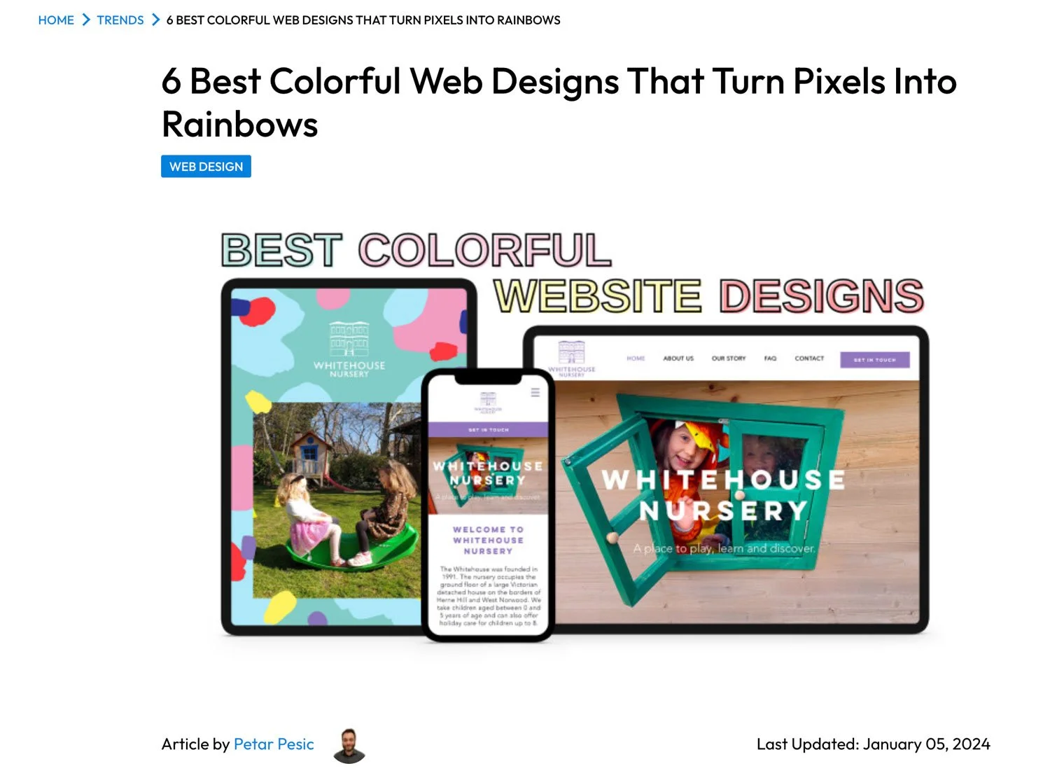Being included in the article celebrating the best colourful web designs is a moment of immense pride for me. I love my job and am buzzing that my website sits amongst other creative designs in this article.
