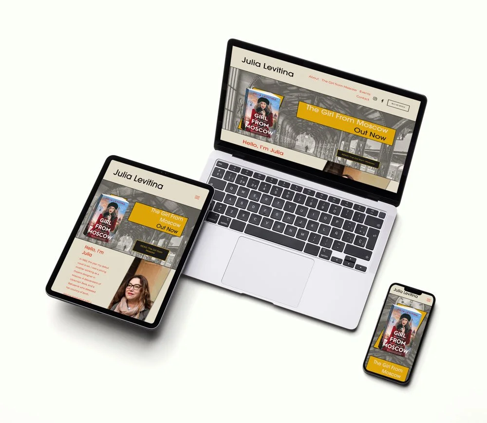 Finding the perfect balance between minimalism and maximalism is an ongoing creative endeavour. With Julia’s website, I sought to strike that delicate balance - sleek and sophisticated yet bold and daring. Clean lines and minimalist aesthetics provide a canvas for vibrant colours and playful elements to shine, creating a digital experience that is both visually stunning, engaging and most importantly, starts to tell the user about Julia and her book, The Girl from Moscow.